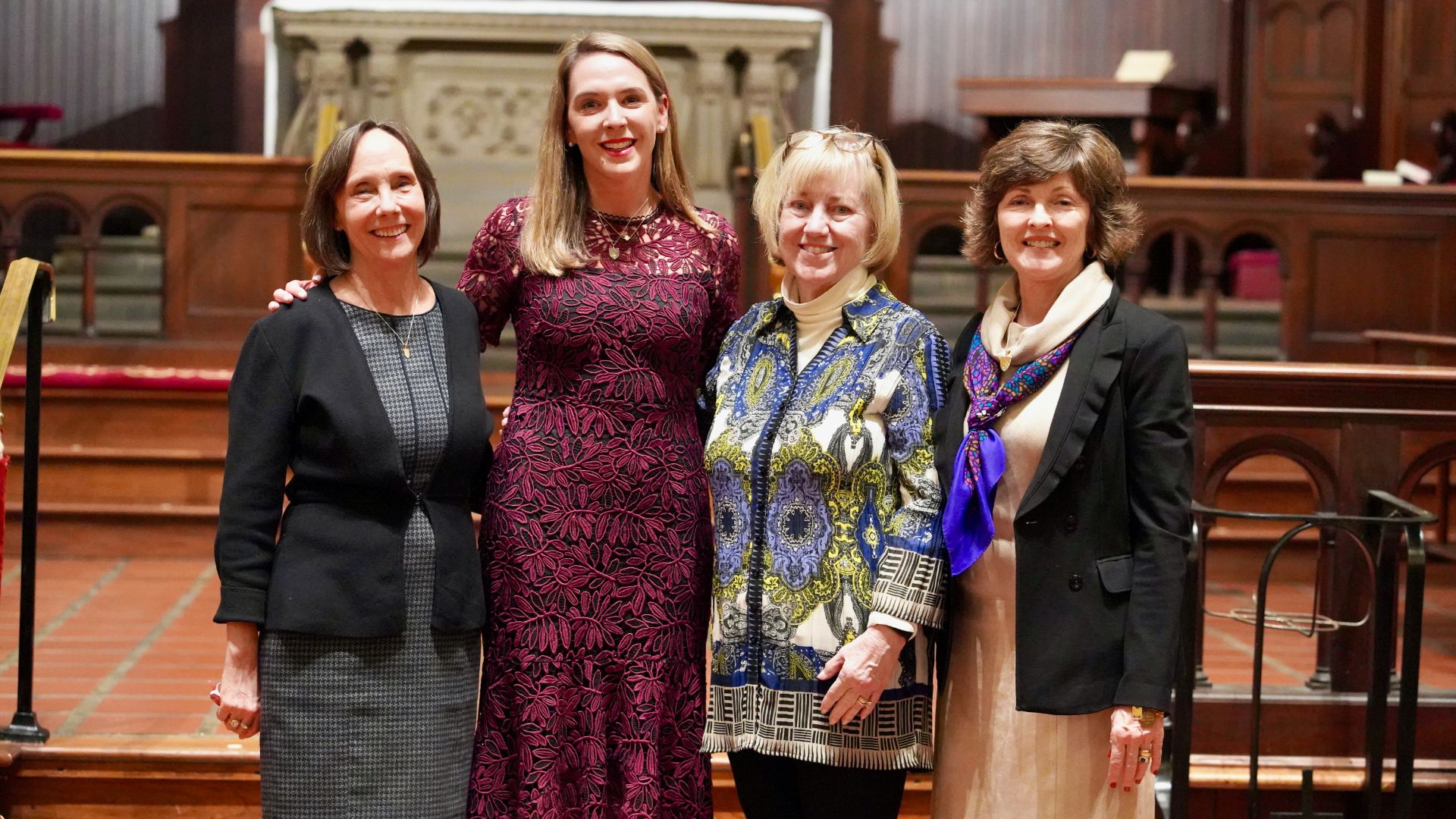 St. Anne’s School’s Founding Board included Hutchey Doley (left) and Caroline Aras (right) pictured here at the 2024 Installation Ceremony of current Head of School Connie Coker (middle left) alongside Founding Head Fran Lukens (middle right)