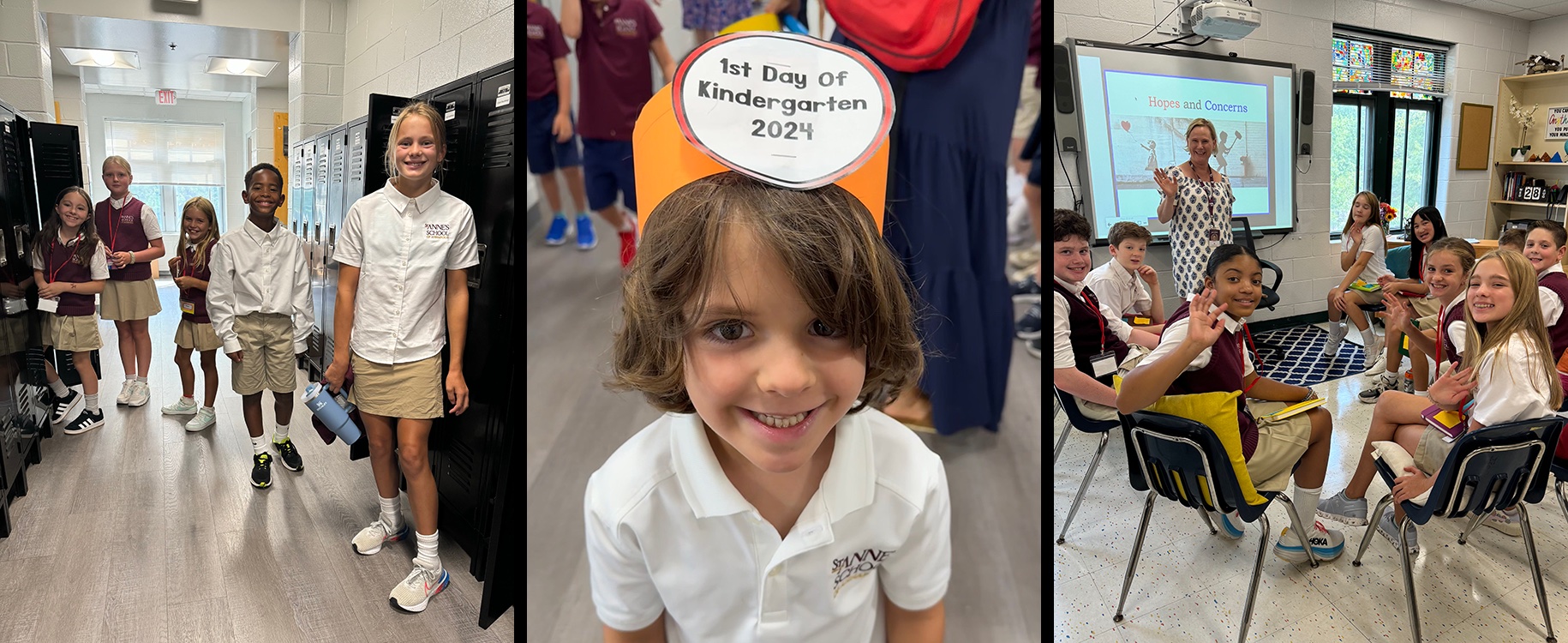 Educators talk a lot about going slow to go fast: before diving into academics, we collectively set routines and expectations while empowering students to own their environment and experience, and this was fully evident across the School today. As I walked through the halls after Chapel, I spotted our Kindergarteners, in their customized first-day hats, practicing Ways We Want To Be in the hallway as their First Grade friends walked confidently by. Second Grade students were excitedly sharing their interests as they created “All About Me” books, and Third Grade students released this morning’s excited energy as they sang and danced with delight on the “spinny thing” on the playground.]