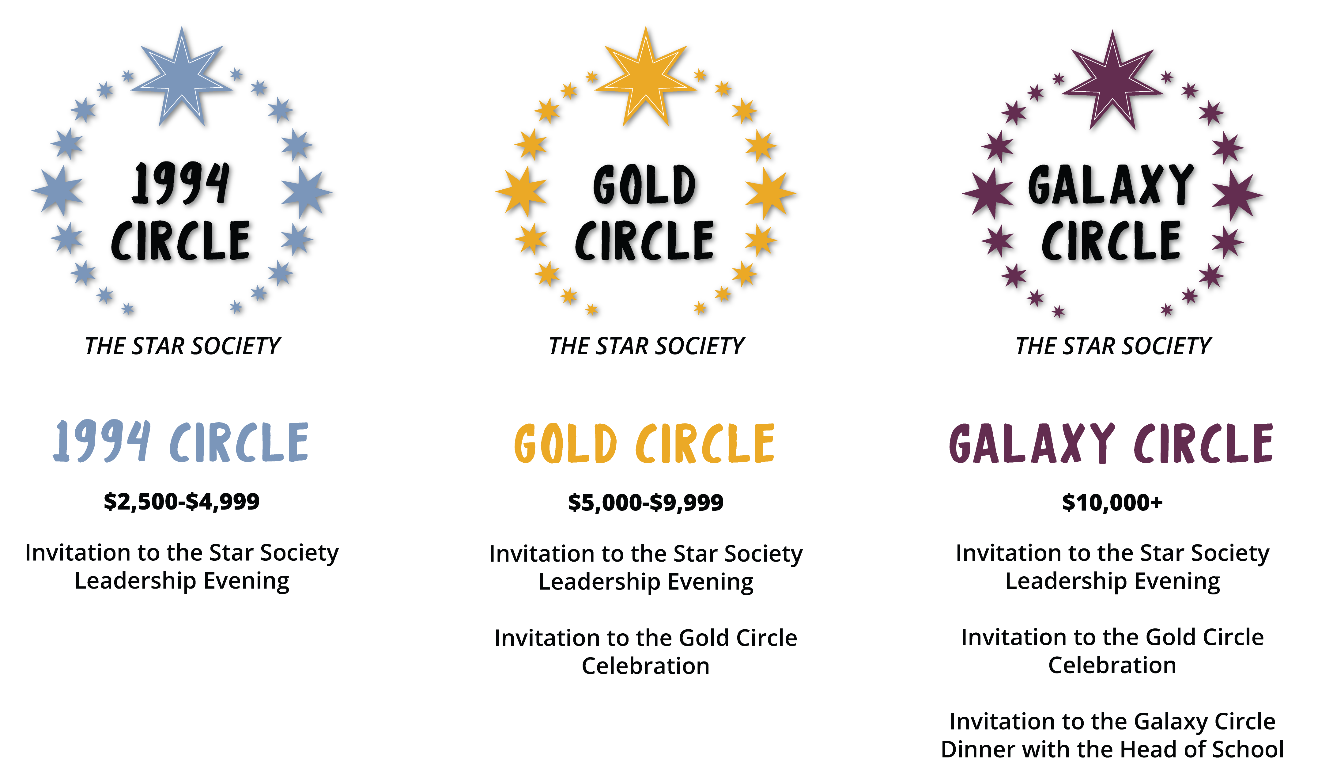 Donors who choose to make a gift of $2,500+ to the Constellation Fund become part of the Star Society. We celebrate these philanthropic leaders at annual events in recognition of their outstanding support. The Star Society includes three giving circles: